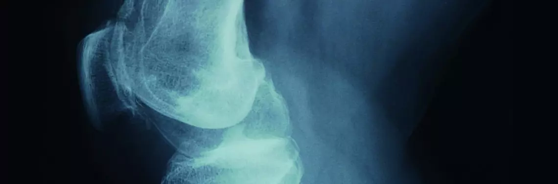 - Dystalny koniec kości udowej ustabilizowany na stole terapeutycznym pasem stabilizacyjnym.